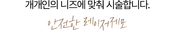 일반적으로 제모를 하기 위해 면도기를 사용하는 경우가 많지만 매번 제모를 해야한다는 번거로움과 깔끔한 이미지를 위해서 횟수를 반복할 수록 털이 자라나지 않는 반영구적인 제모효과를 가진 레이저 제모를 통해 근본적인 솔루션을 전해드립니다.